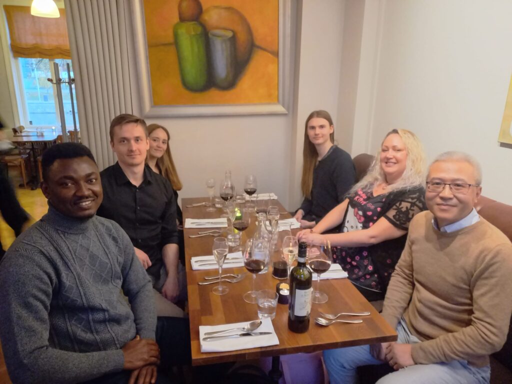 Members of the Li team having dinner at Sergio’s Turku during our joint project meeting with Åbo Akademi professor Jessica Rosenholm 17.10.2025.Li team posing after playing billiards during our team day 25.9.2025!